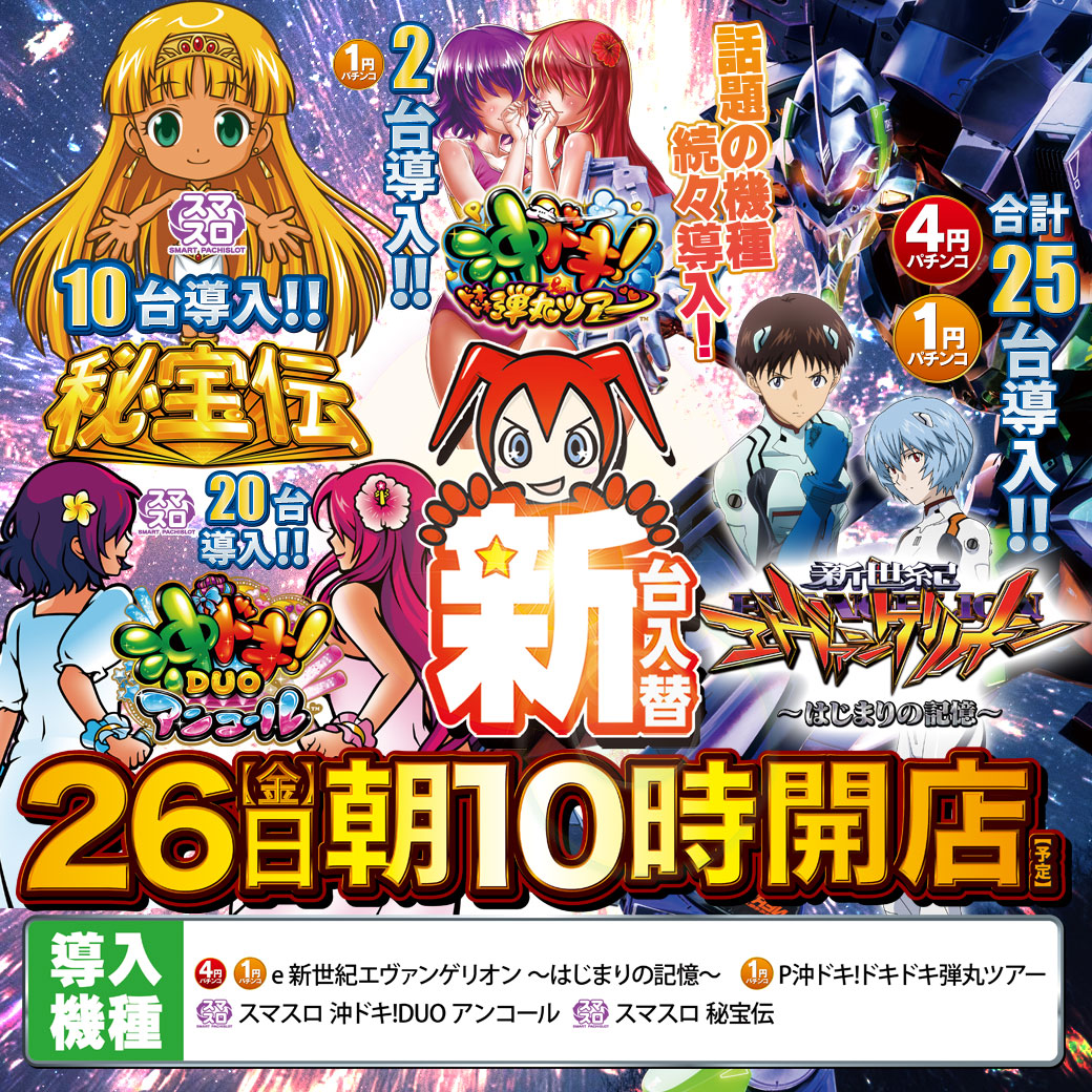 | 定休日 | 新台入替の前日は定休日とさせて頂きます。 |