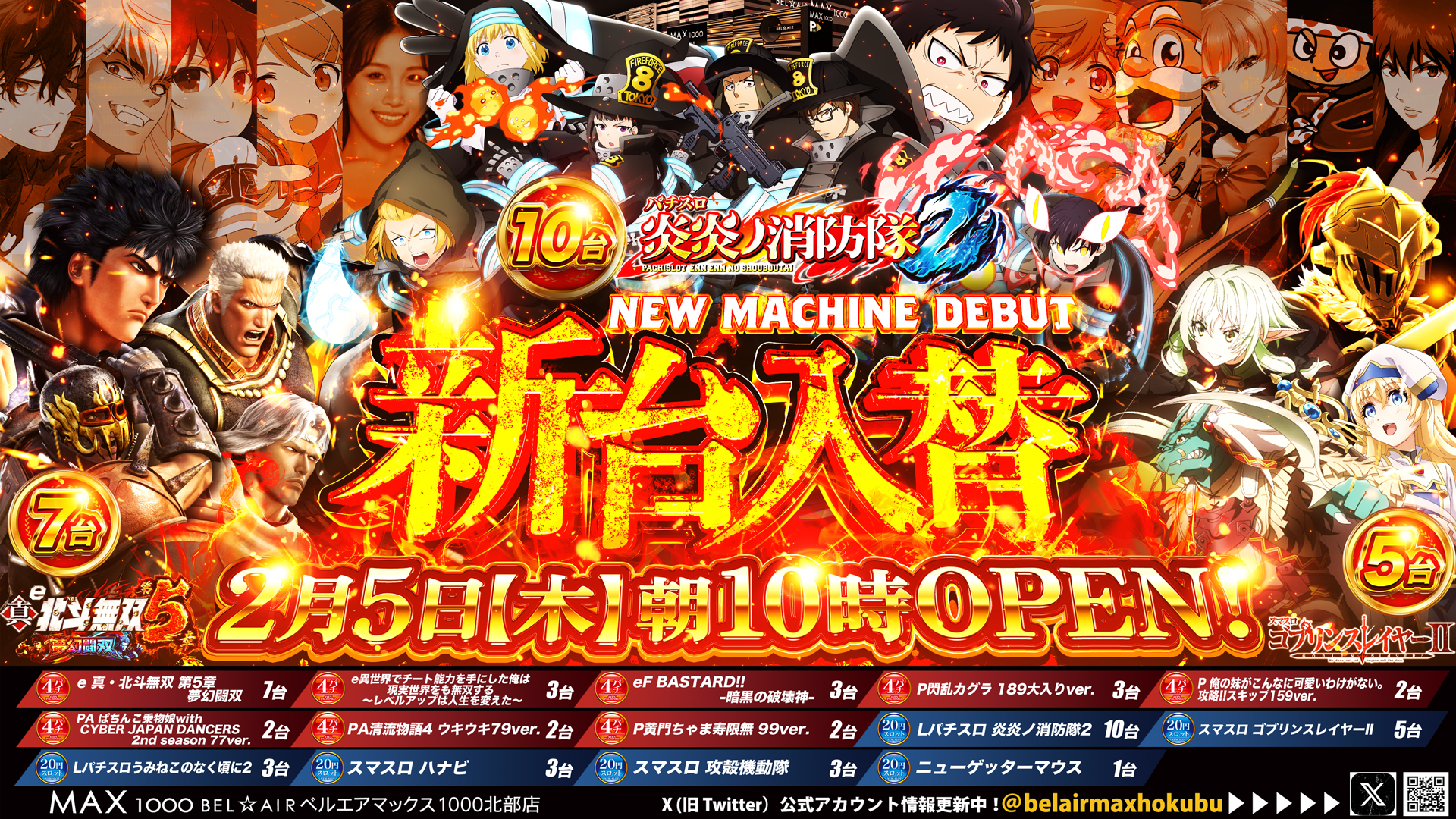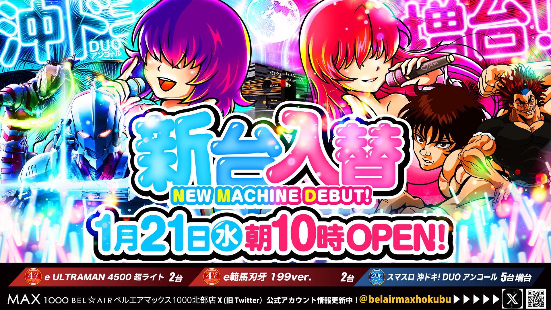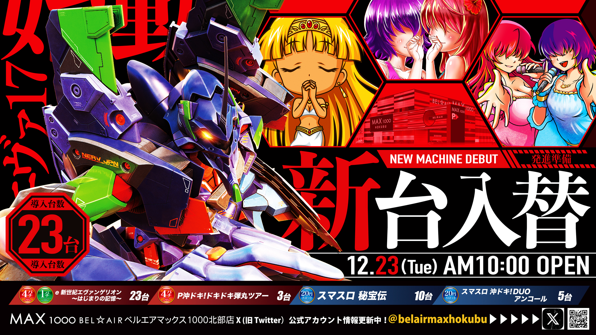 | 遊技台数 | 4パチ:352台、1パチ:264台、20スロ:405台 合計:1021台 |