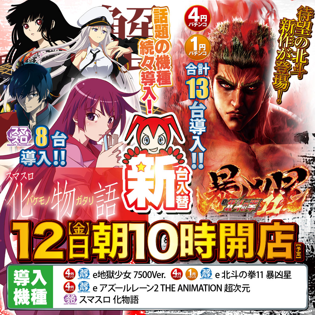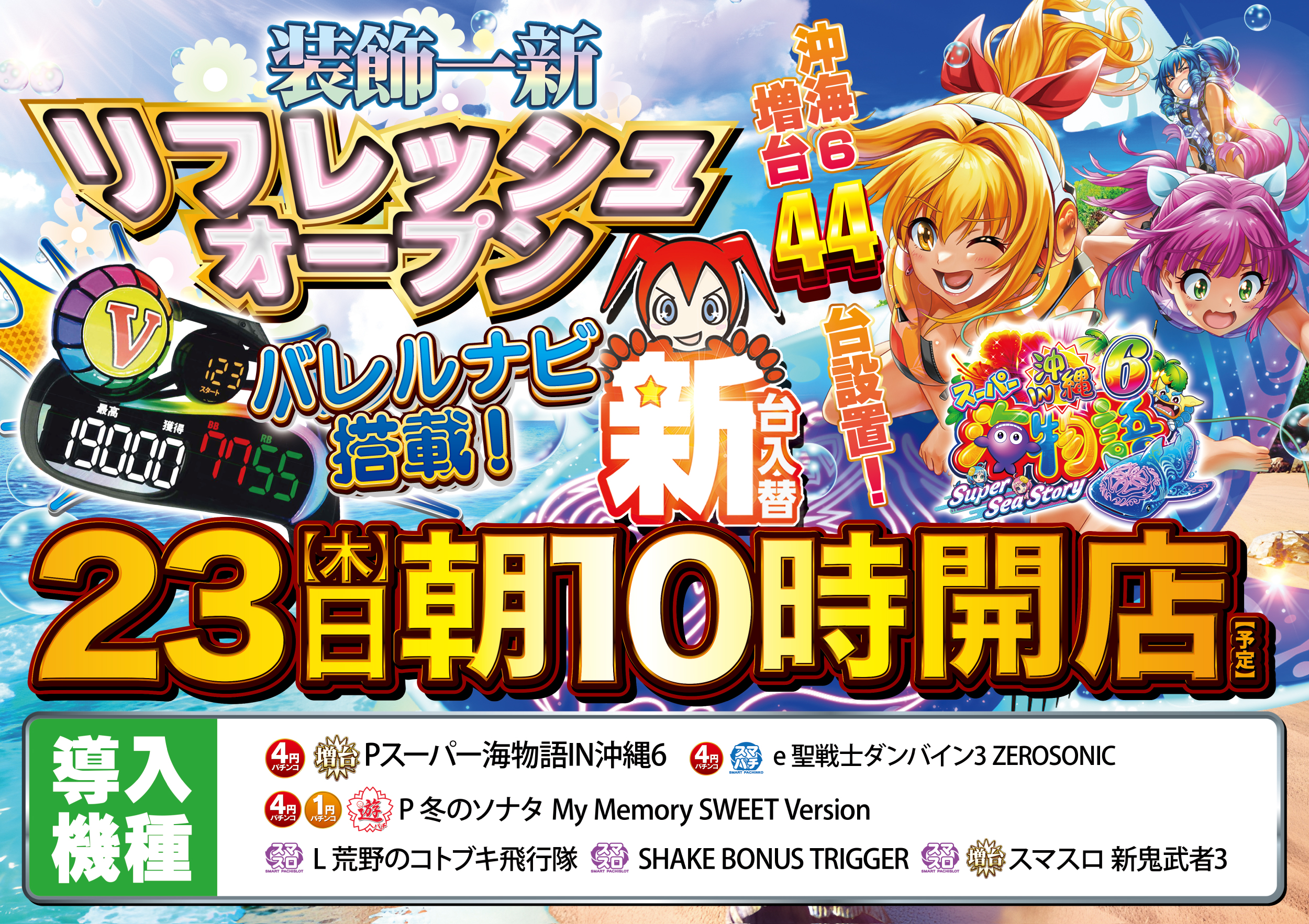| 定休日 | 新台入替の前日は定休日とさせて頂きます。 |