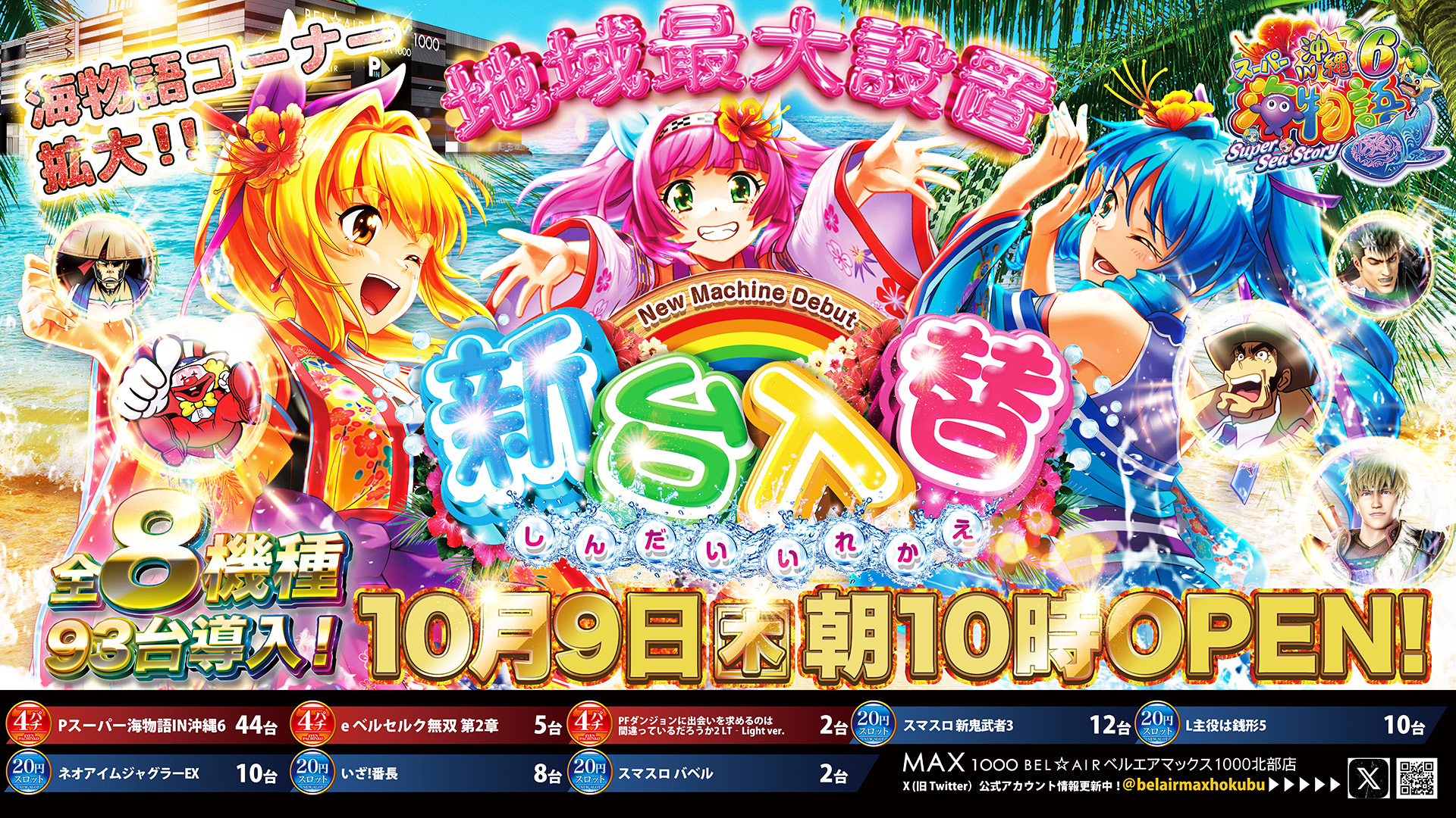 遊技台数 | 4パチ:352台、1パチ:264台、20スロ:405台 合計:1021台 |