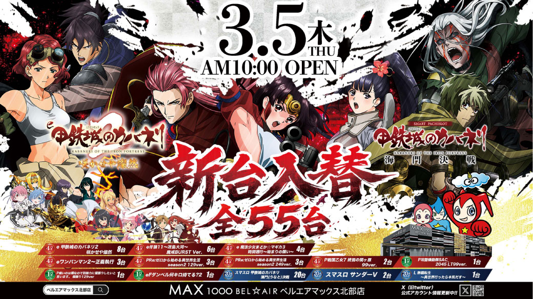| 遊技台数 | 4パチ:352台、1パチ:264台、20スロ:405台 合計:1021台 |